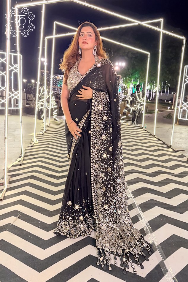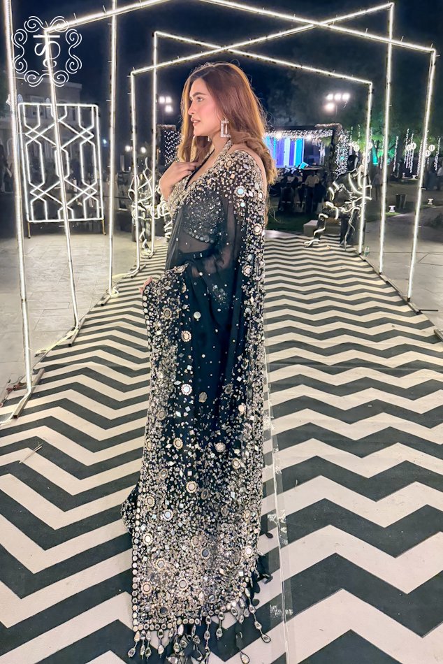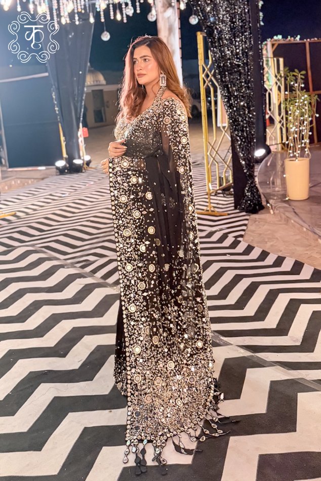 Black Silver Mirror Work Designer Saree