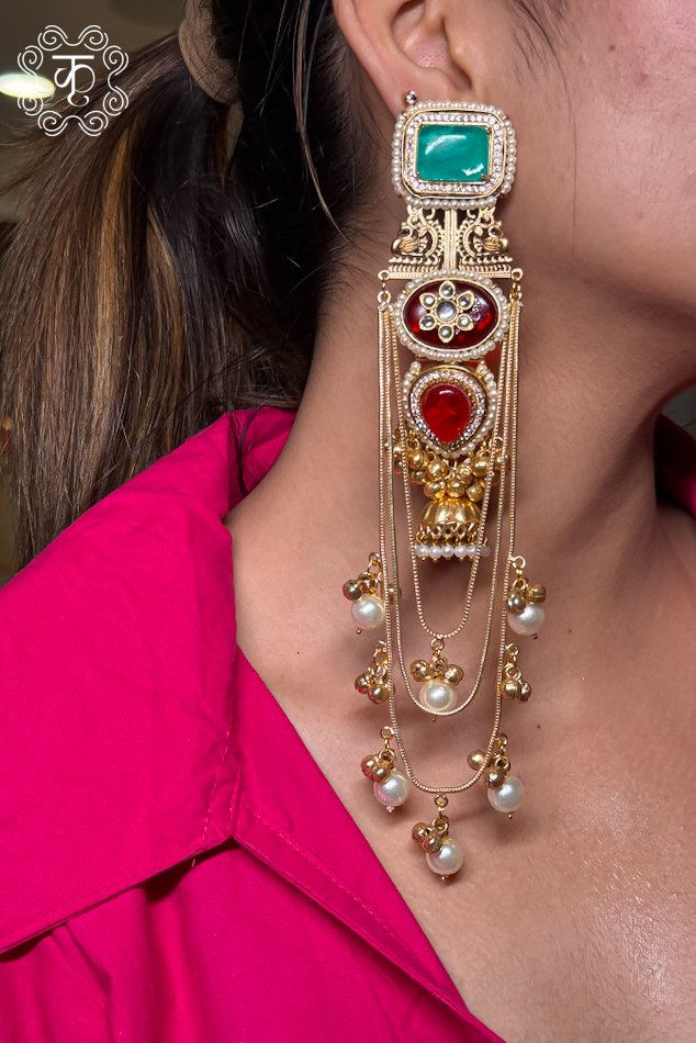 Kashmiri EarRings -red green
