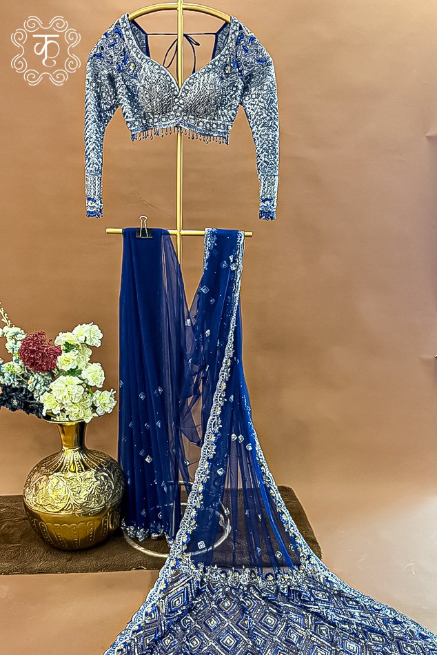 Note: Our collection is custom-designed with great attention to detail. We require 15 days to design and prepare each Outfit/Saree for you. Thank you for your patience!