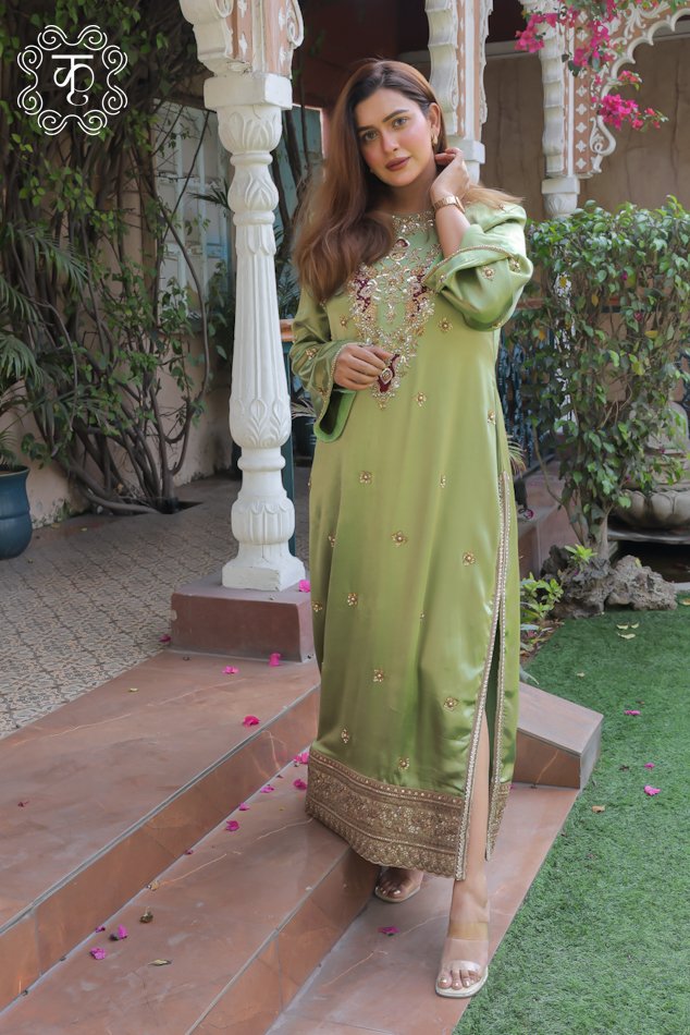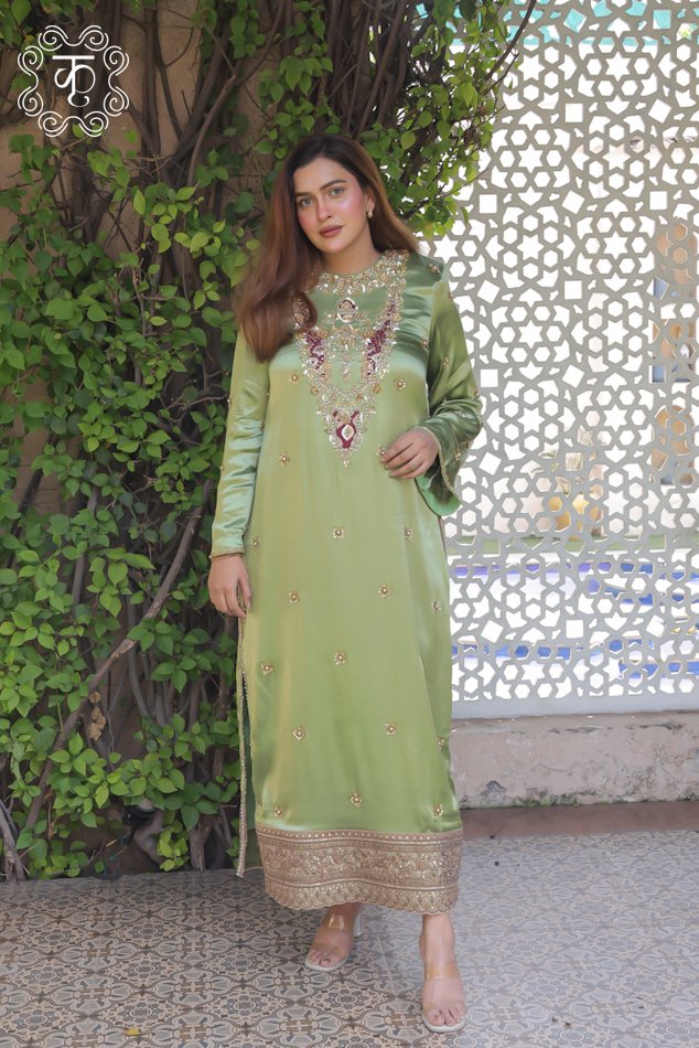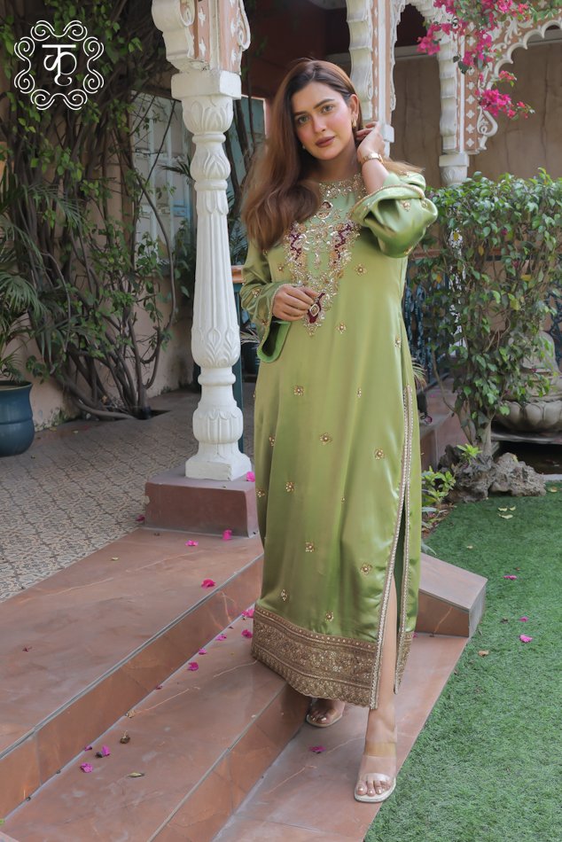 Straight Slide Slit Dress – Sea Green